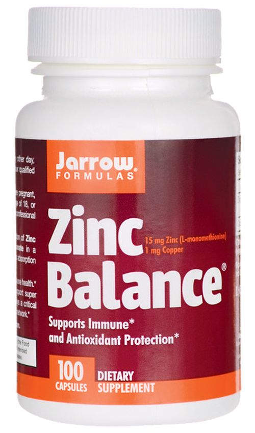 Produkt: Jarrow Formulas Zinc Balance, L-methionin zinek L-OptiZinc + měď, 15mg, 100 kapslí